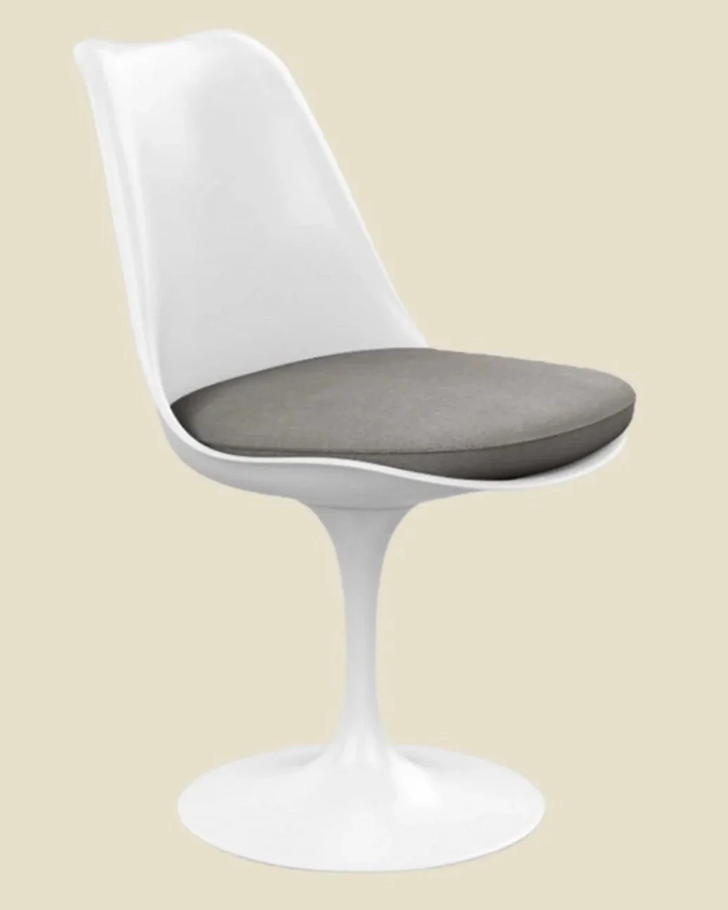 Son of designers Eliel and Loja Saarinen, Eero Saarinen was destined for design. He had a long-standing hatred for the visual clutter that 4 legged chairs created. He believed that they made for a "confusing and unrestful world" and so, he came up with the 1-legged chair, AKA the Tulip. With its perfect proportions and modern lines, this MCM "Space Age" line of furniture also includes tables, armchairs, and stools.