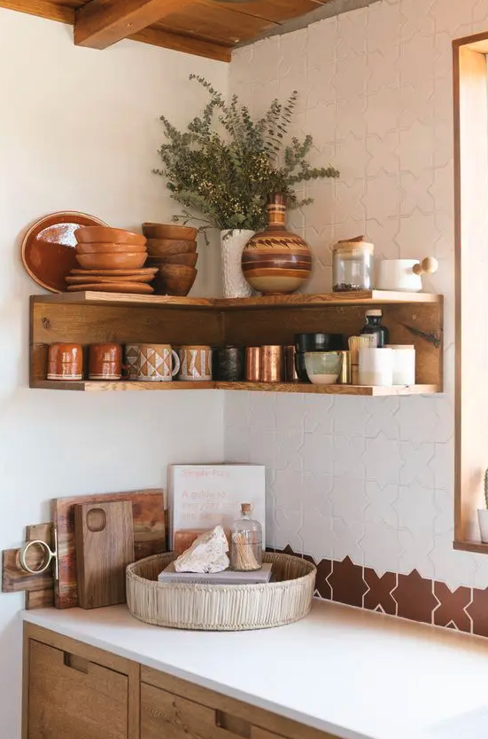 This corner open shelving solution is just lovely. From “The Hacienda” by The Joshua Tree House.